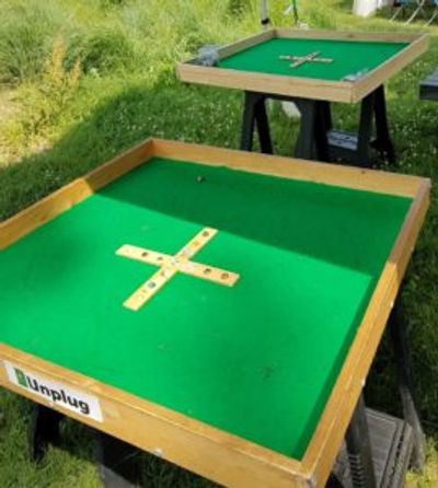 Organize a marbles tournament. Pictured below are 3-feet square “marble boards”, which I use to practice shooting knuckles down and playing Ringer, at festivals, after-school clubs and during tournaments.